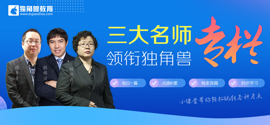 我們的專欄不僅讓你學習文字知識,更有獨家音頻同步更新,在看講義的同時,感受老師講課的風采,體會到獨角獸教育最大特點:足不出戶讓你遠程學習,價格如普通,待遇如面授。