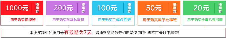 ③抵用券只用于購買相應班次、書籍、套餐,有效期為7天內支付有效,且每張現金券僅限使用一次,不支持累計領取和使用。