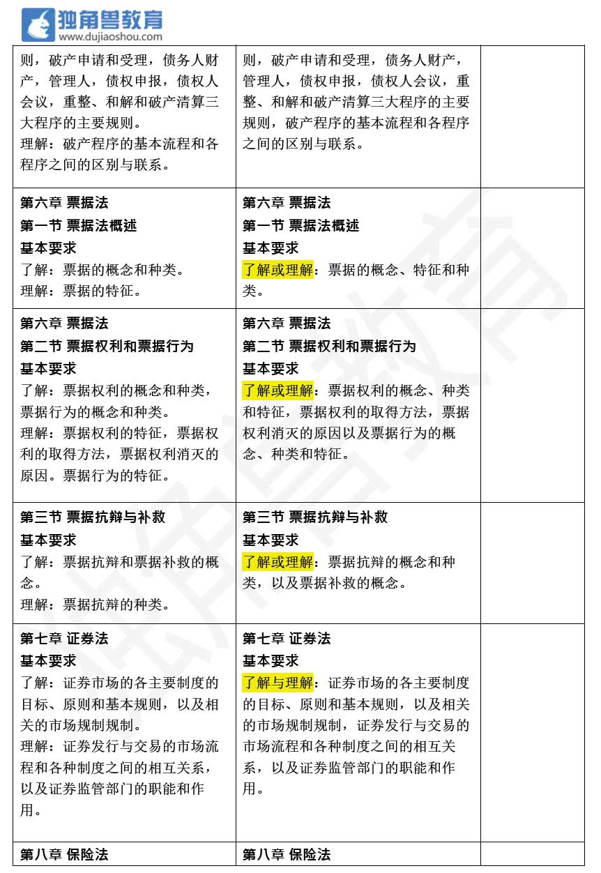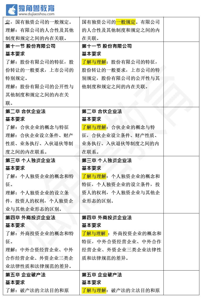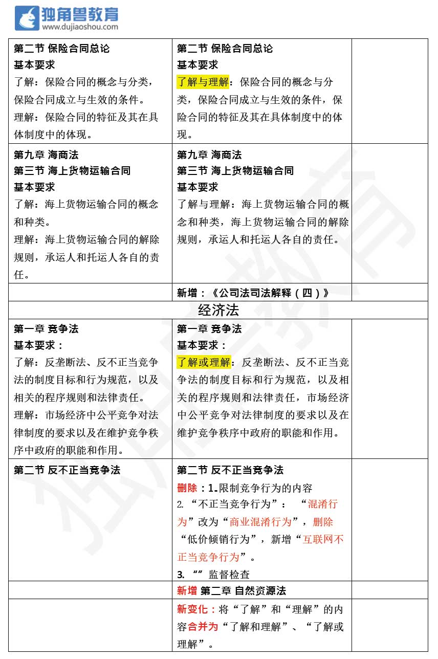 2018年法考大綱變化——商經法
