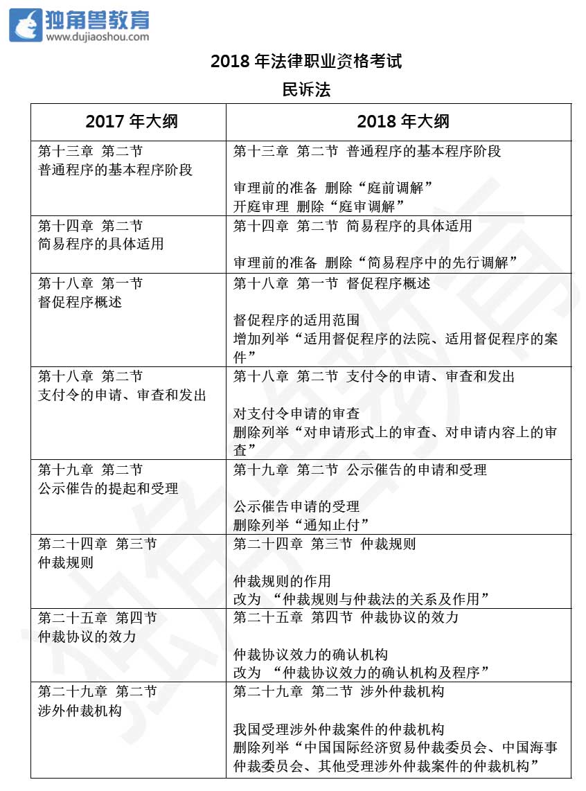 2018年法考大綱變化——民訴法