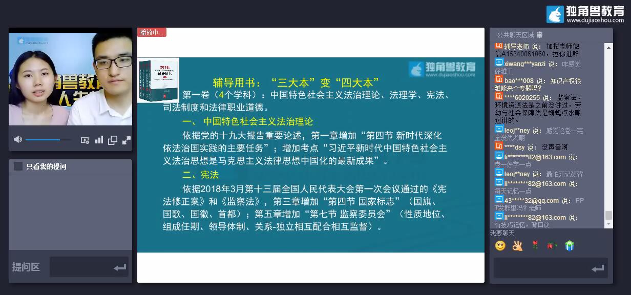 獨角獸教育官網已經于昨日(14日),直播解讀2018法考大綱變化內容,之后可以在網站上觀看直播回放視頻。點擊直播回放
