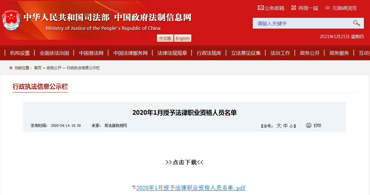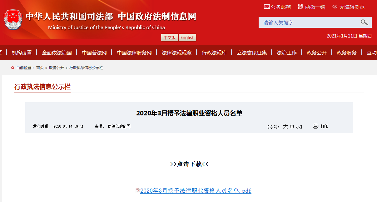 估計大家都沒想到授予法律職業資格的公告會發布在這吧↑↑↑,了解詳情可打開下方鏈接: