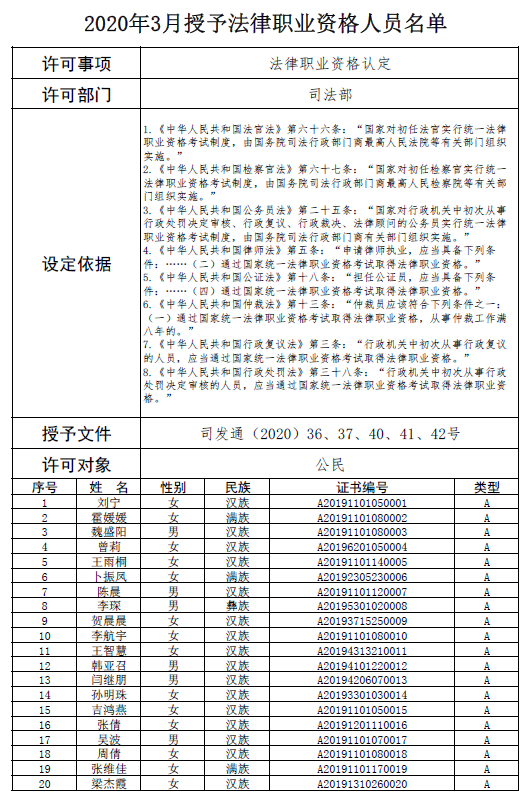 2.2020年3月授予法律職業資格100412人;