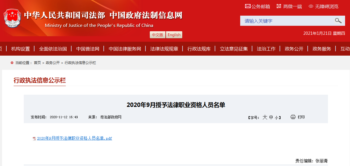 3.2020年9月授予法律職業資格29021人;