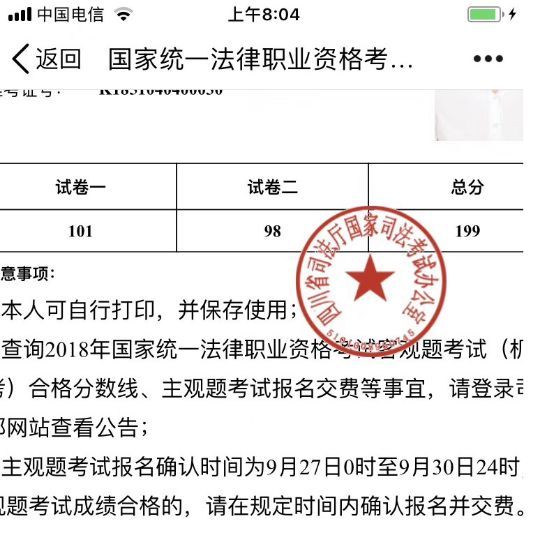 終于客觀題考試來了,我很忐忑,因為生孩子之后的學習時間、效率都不算夠,我始終告訴自己堅持就是勝利,還好今年的題目雖然有些很蹊蹺,但主要的考點好多都是老師講過的。 考完之后查到199的成績,我很興奮。