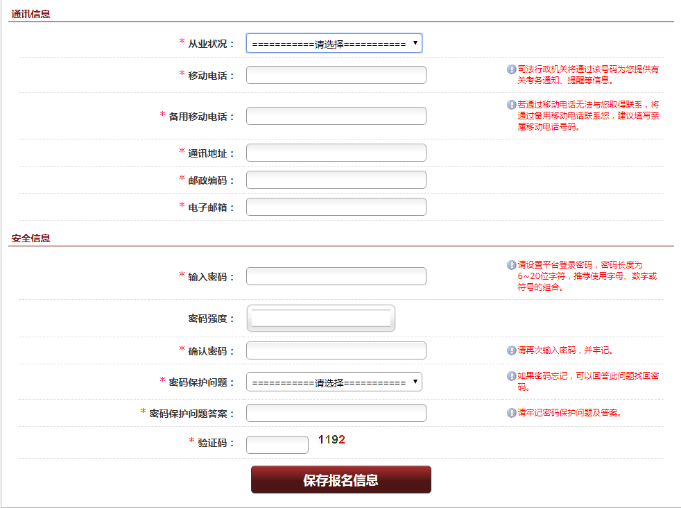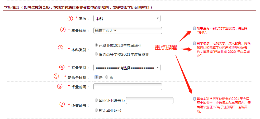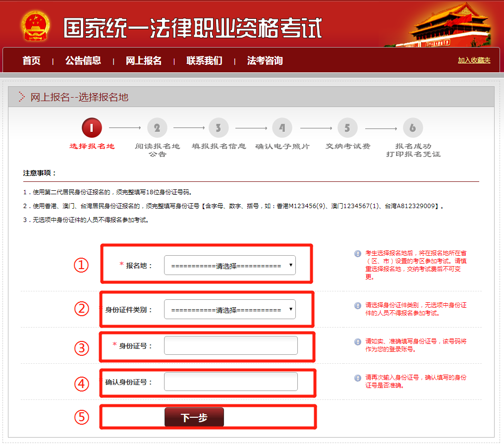 這一塊需要注意的是,您準(zhǔn)備在哪個(gè)城市考試,①報(bào)名地 就選擇哪個(gè)城市,報(bào)名成功后,不能修改,其實(shí)司法部已經(jīng)提示的相當(dāng)明確啦,只是咱們各位考生著急報(bào)名忽略了這些細(xì)節(jié)。