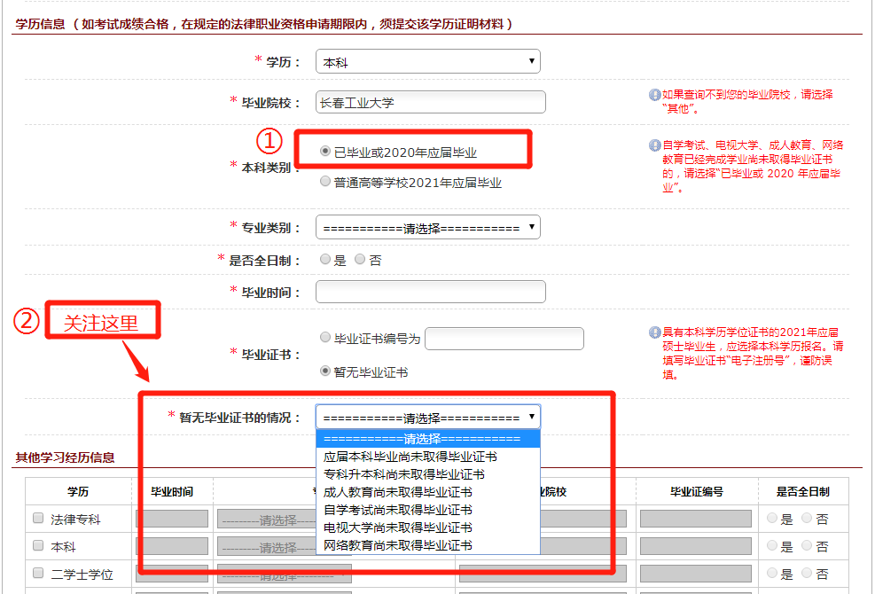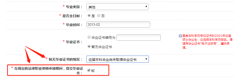 問(wèn)題二:應(yīng)屆畢業(yè)暫無(wú)畢業(yè)證的這么選↓↓↓(下圖),只要確保2020年12月31日之前拿到本科畢業(yè)證就可以。
