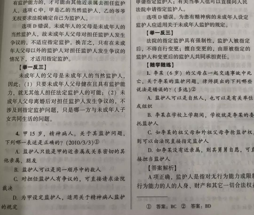 對于非法本、零基礎的考生來說,學到哪一科,學到哪一個考點,就拿起哪一科哪一個點的真題來進行練習是最好的,因為剛學習了這個部分,記憶還很深刻的情況下,趁熱打鐵,用所學習的知識點對真題進行分析,能更清楚的記憶住本題的知識點。對于有基礎、已經學過了這部分內容的考生來說,分科真題能讓你對之前所學的知識進行一個系統的回憶,如同“吾日三省吾身”,才能彌補自身缺點,讓自己變得更優秀。對于之前學習的現在記不清的知識點,通過練習分科真題,能讓你對這個點記憶深刻,達到事半功倍的效果。獨角獸教育獨家編寫并出版的這本《十年真題分類解讀》系統全面地總結了不同知識點的真題,剔除已經失效或不適用的解析,及時對新修訂的法條作出答案與解析的勘誤,保證法律和司法解釋的最新性,用全新的解析來對學員進行輔導。知識點全面,解析為最新修訂版,是值得選擇的一本真題書。
