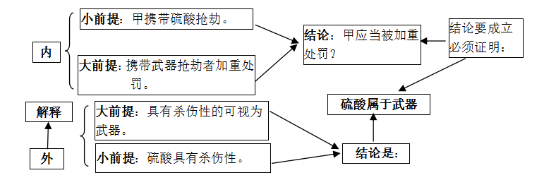 2.法律推理或法律適用在整體框架上是一個三段論,而且是大三段論套小三段論。這就意味著在外部證成的過程中也必然涉及內部證成。