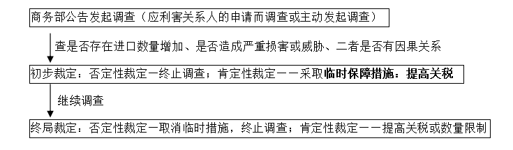 (2)初裁決定——臨時保障措施(提高關(guān)稅)實施不超過200天;終裁決定——提高關(guān)稅或者數(shù)量限制