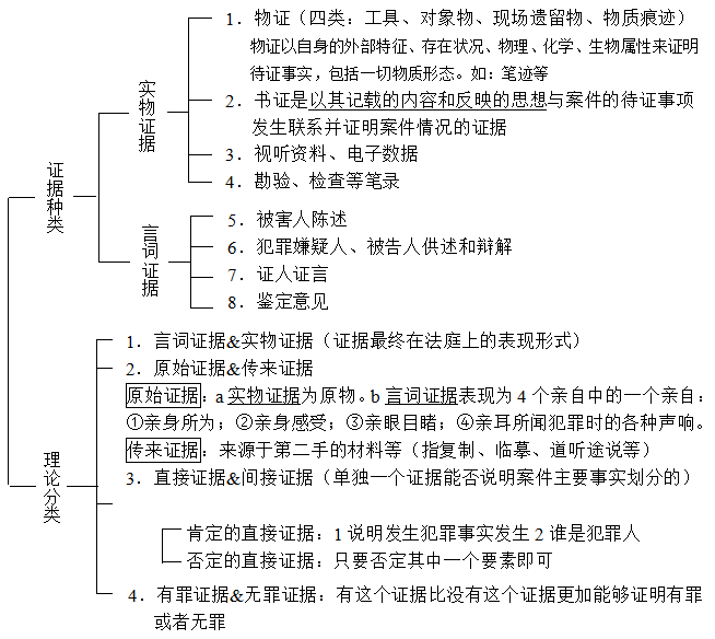 考點(diǎn)提示:本章的理論性較強(qiáng),需要我們重點(diǎn)把握的是證據(jù)的法定種類和理論分類,還有刑事證據(jù)的規(guī)則,尤其是非法證據(jù)排除規(guī)則的相關(guān)知識(shí)。