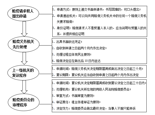 賠償請求人憑生效的判決書、復(fù)議決定書、賠償決定書或者調(diào)解書,向賠償義務(wù)機關(guān)申請支付賠償金。