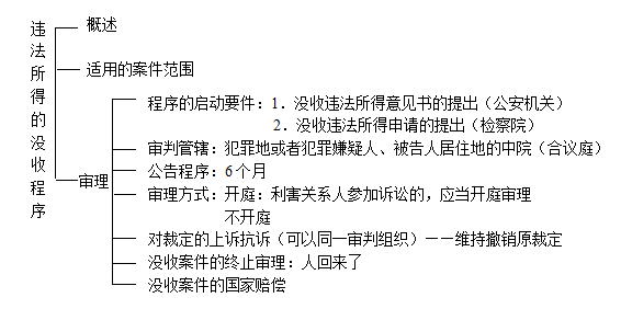 考點提示:1.該程序的適用條件;2.該程序的申請程序;3.管轄法院;4.違法所得的范圍;5.審理程序。