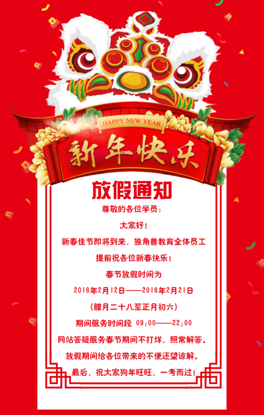 2018年獨(dú)角獸教育春節(jié)放假通知