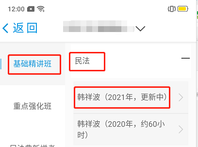 3.選擇課程:基礎(chǔ)精講班→民法→韓祥波(2021年,更新中)